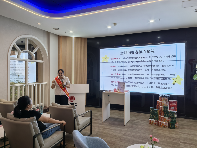 工作人员正在为客户们普及金融知识